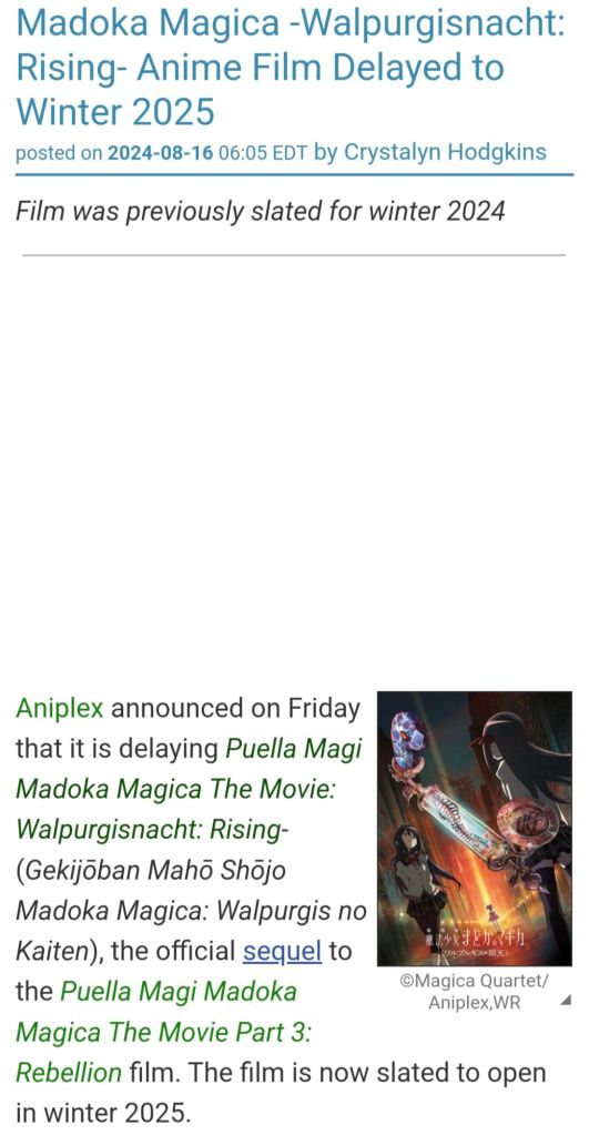 In short: be grateful that the Magica Quartet and the staff at Shaft, Aniplex, and whoever else is involved are wanting to take their time to deliver something fantastic instead of rushing to release something terrible.