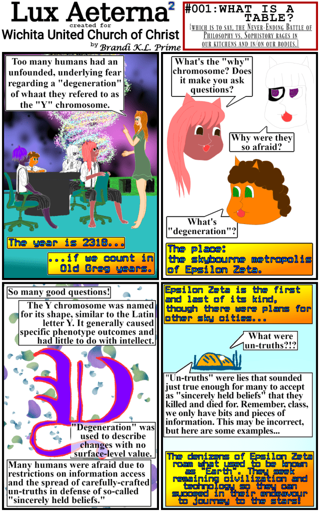Also, really proud of the white erasure on my part as a white. I hope to strive for more and more race traitorism in the future. Go team win. Nicole up there looks like a ghost. Oh, yeah, all the characters in those panels have names. From left to right in the top left frame: Katindig, Deborah Baum, Ru Shi, and Sara Zee.