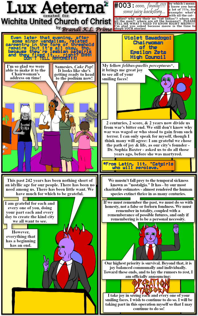 Lux Aeterna 003: ooo finally!!!! some juicy backstory… wherein i drop a fucking anti-war, anti-nostalgia, pro-life, pro-joy manifesto on an unsuspecting congregation. <first||prev||metamagic||lux||next>