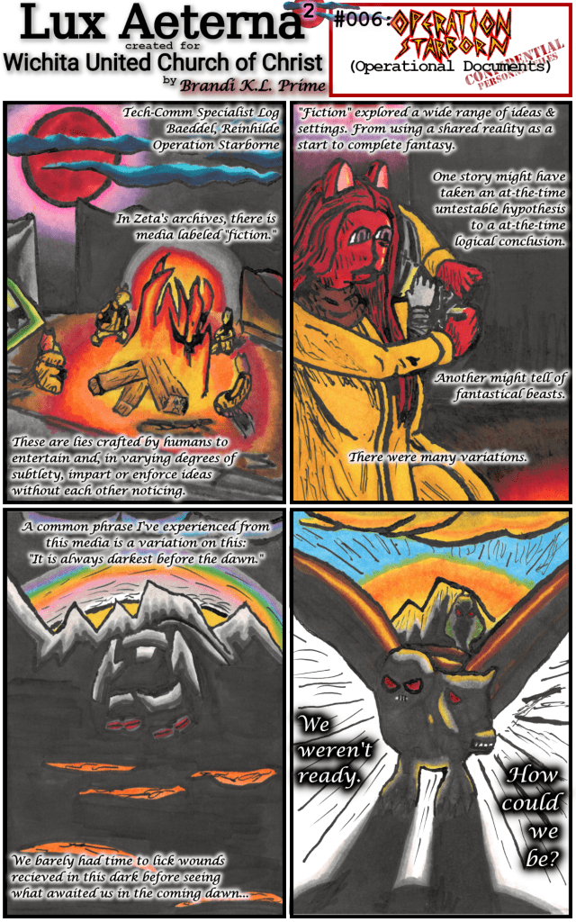 Lux Aeterna 006: Operation Starborn – Tech-Comm Specialist Log 2 A Harold Potty reference?! In my good, Christian comic??? I’ve been going through and updating the comics to fix errors. You’re welcome. <first||prev||metamagic||lux||next>